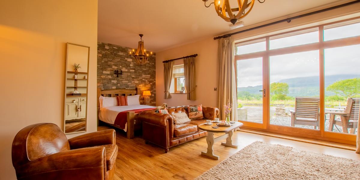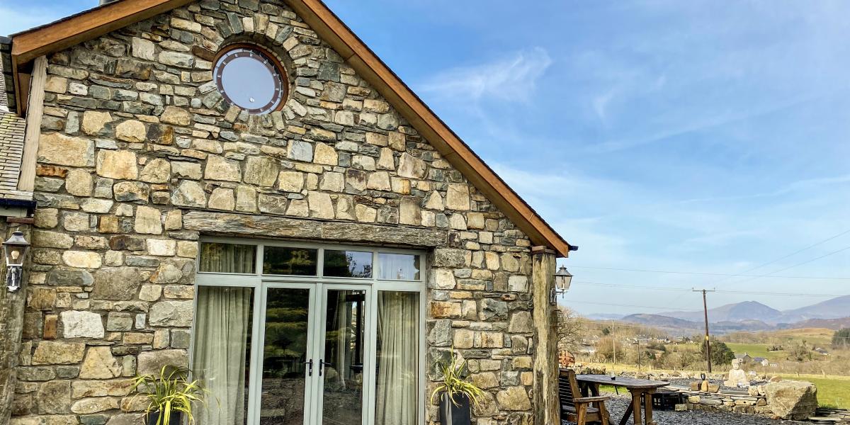 The converted barns are now five contemporary suites offering comfort with calm and grounded design. Interiors follow a warm, modern rustic style — simple lines, natural textures, and a palette that mirrors the surrounding landscape. Light flows through the large patio windows, framing views of the stunning Eryri countryside and Moelwyn mountains. Everything feels uncluttered, welcoming, and just right.